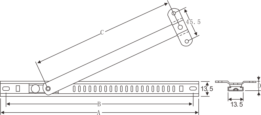 符合中國QB/T3888《鋁合金窗不銹鋼滑撐》標準。